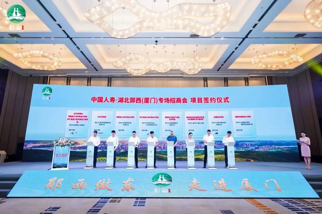 6月19日,中国人寿·湖北郧西(厦门)专场招商会在福建厦门举行。郧西县与来自全国各地的“朋友圈”企业现场签订招商引资项目23个,协议金额107.2亿元,涉及文旅、新材料、生物医药、智能制造、农产品加工、商贸等多个领域。在本次招商会上,郧西与国寿投资公司、教育部、中国乡村发展基金会签订“教师教研提升”项目协议,助力乡村人才振兴;“海誓山盟·浪漫之旅”厦门市·郧西县婚庆文旅合作项目等一批招商项目成功签约。