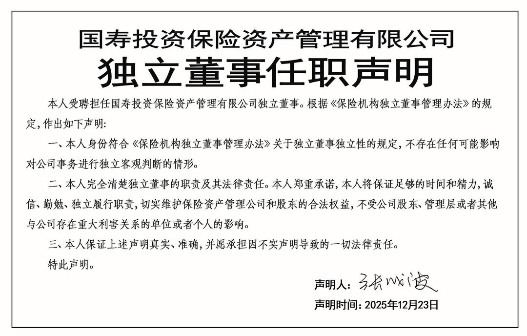 独立董事张成波任职声明